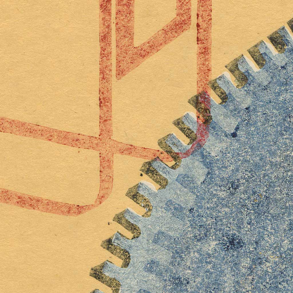 Original material/colour: colour linocut, newspaper.